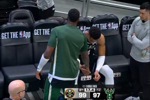 沮丧!字母哥小腿不舒服啊 走去球员通道又回了替补席!