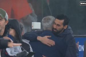 师徒情深!在本菲卡对阵皇马的比赛前,穆里尼奥与阿韦洛亚拥抱