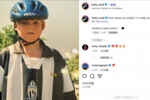 原来你也是儿文梦!尤文新援霍尔姆社媒晒儿时身穿尤文球衣的照片