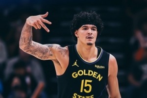 赛后勇士官推发布赢球海报,桑托斯成为封面人物。