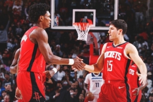 后场互补组合!火箭发布赢球海报:封面为阿门和谢泼德击掌瞬间