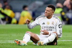 姆巴佩加盟皇马之后,到目前为止国内潜在的4次夺冠机会,他都没能如愿。上赛季西甲2场他贡献3球,但是皇马被巴萨双杀,最终4分之差排名西甲第2。上赛季国王杯和西超杯的两个决赛他均有斩获1球,不过这两场皇马都输给了巴萨。本赛季西超杯他替补出战,可惜依旧没能跨过巴萨这道坎,皇马2-3告负错失冠军。